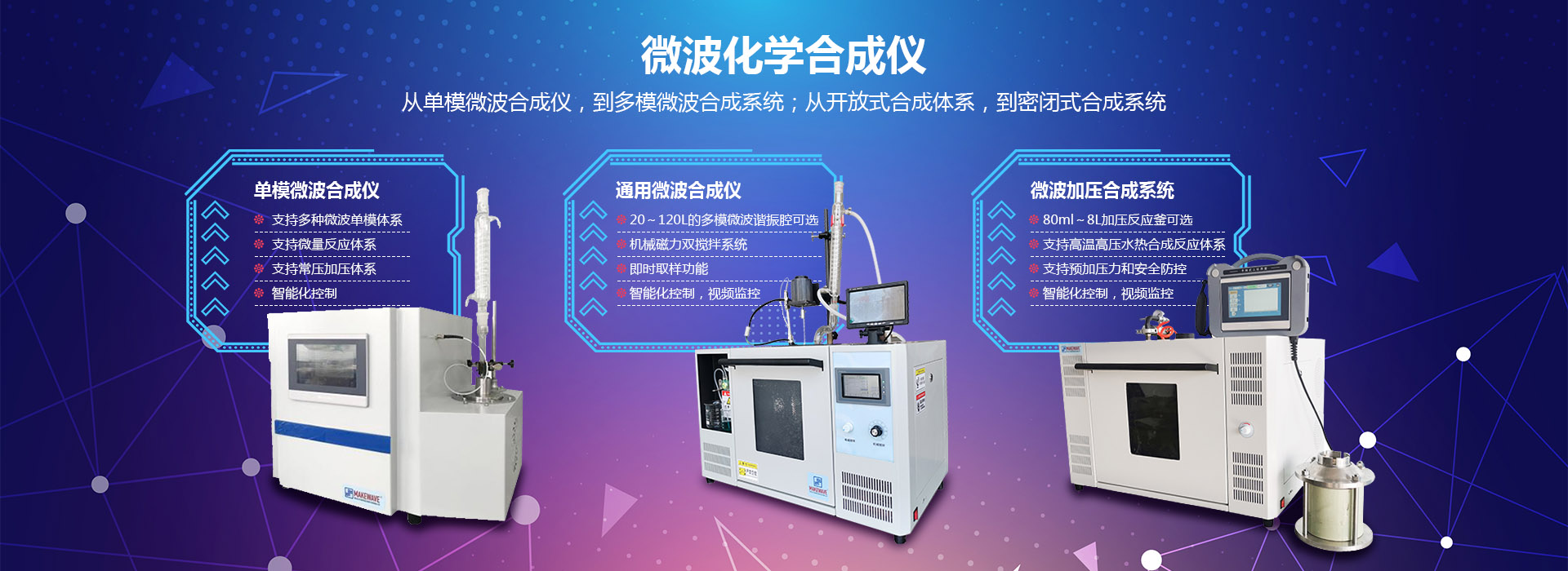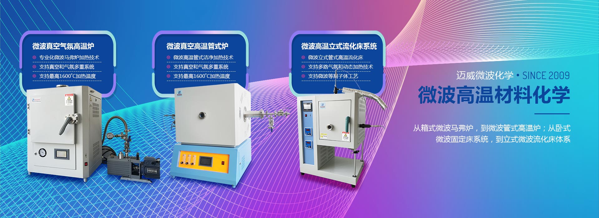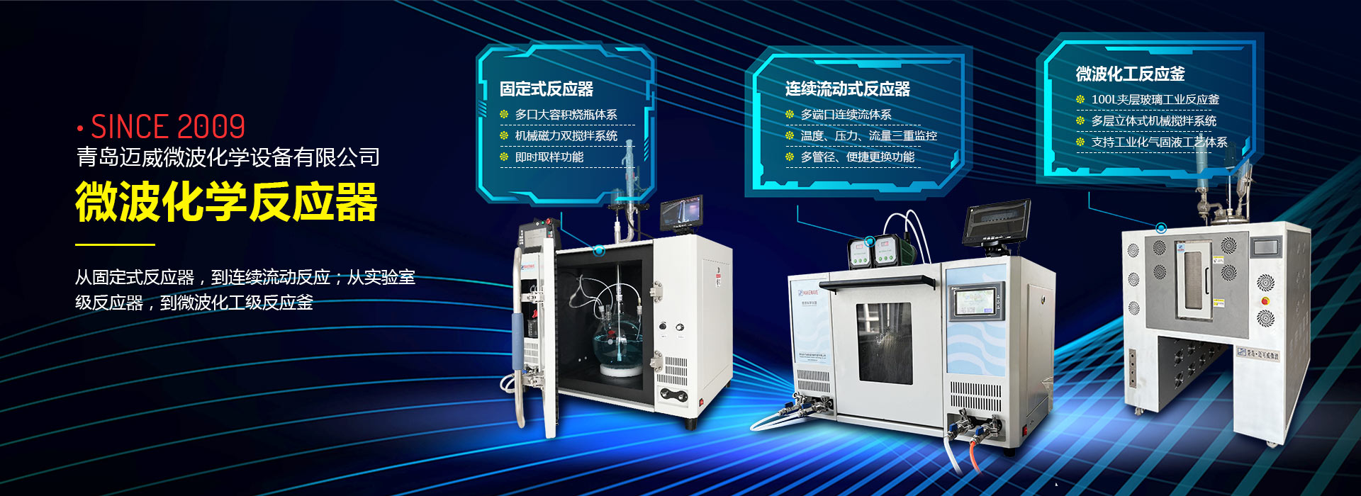 青岛迈威微波化学设备有限公司创立于2009年9月,公司坐落于青岛国家高新技术产业开发区,是一家专业从事微波技术在化学和化工领域应用的科技型企业。迈威坚持“微波化学”作为产品设计和工艺研发的学科基础,致力于满足用户对化学实践中“效率、速率、收率”的需求,拥有“开放式、密闭式、连续流动、微量以及高温处置”五大类微波化学反应体系,近百个产品种类,满足了用户对于化学、化工、新材料、生物制药以及能源和环保领域的产品需求。
